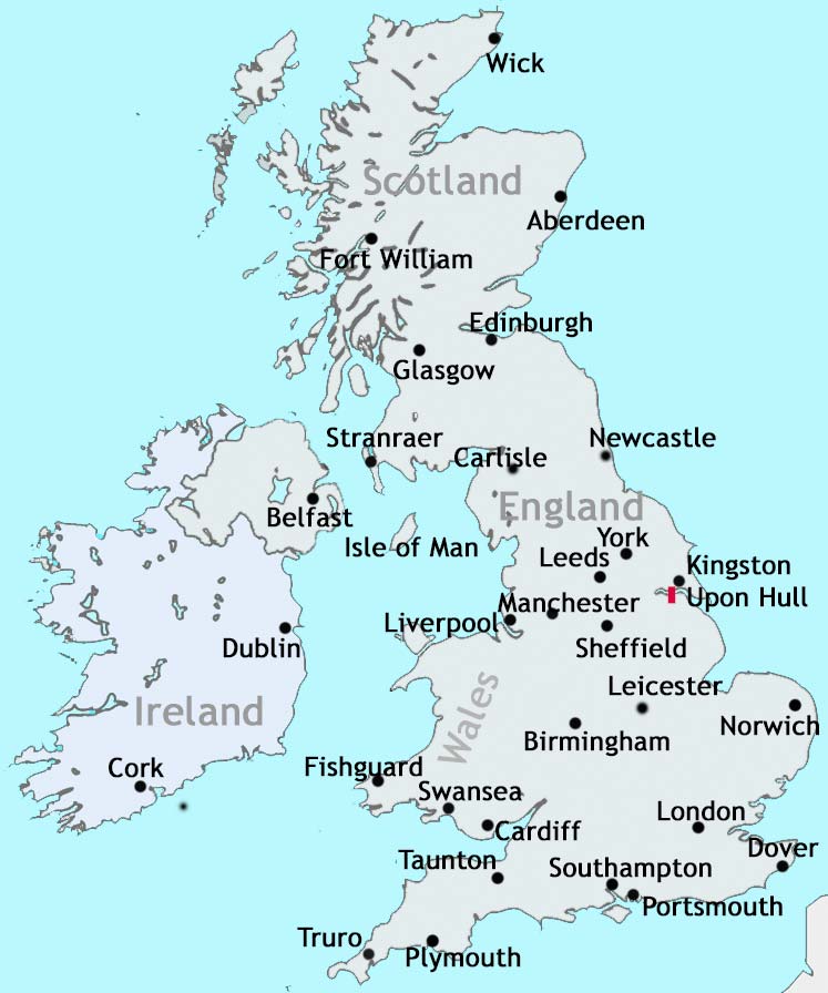 the Humber bridge is marked in red. This map of Britain is to help you get an idea of the location of the Humber Bridge and the distances and locations of the major towns and cities. Please note the distances shown to the various towns and cities are from Hessle the nearest place to the bridge on the north bank.
